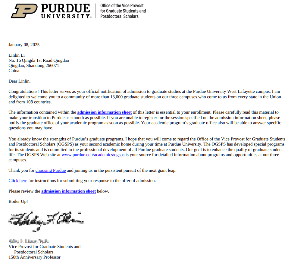 注:普渡大学创建于1869年,拥有13位诺贝尔奖得主,是著名的“公立常春藤”盟校成员,美国一级国家大学,美国十大联盟 (Big Ten Conference) 创始成员,其主校区位于美国印第安纳州西拉法叶市 (West Lafayette)。该校学术声望极高,在美国和国际上都有很强的影响力,是少数能在未开设医学院、法学院的情况下,综合排名仍位列世界一流的大学,2025年QS世界大学排名89。我国的两弹元勋邓稼先、火箭专家梁思礼也都毕业于此。