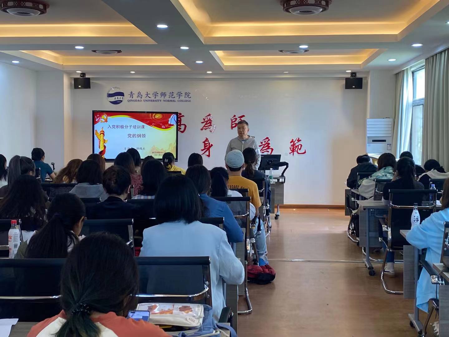 5月20日,师范学院学生党支部在德润楼201会议室组织2021年春季学期入党积极分子党课培训。本次培训课由校党委组织员徐炜光主讲,师范学院学生党支部2020年11月和2021年3月、4月确定的三批入党积极分子参加本次培训。