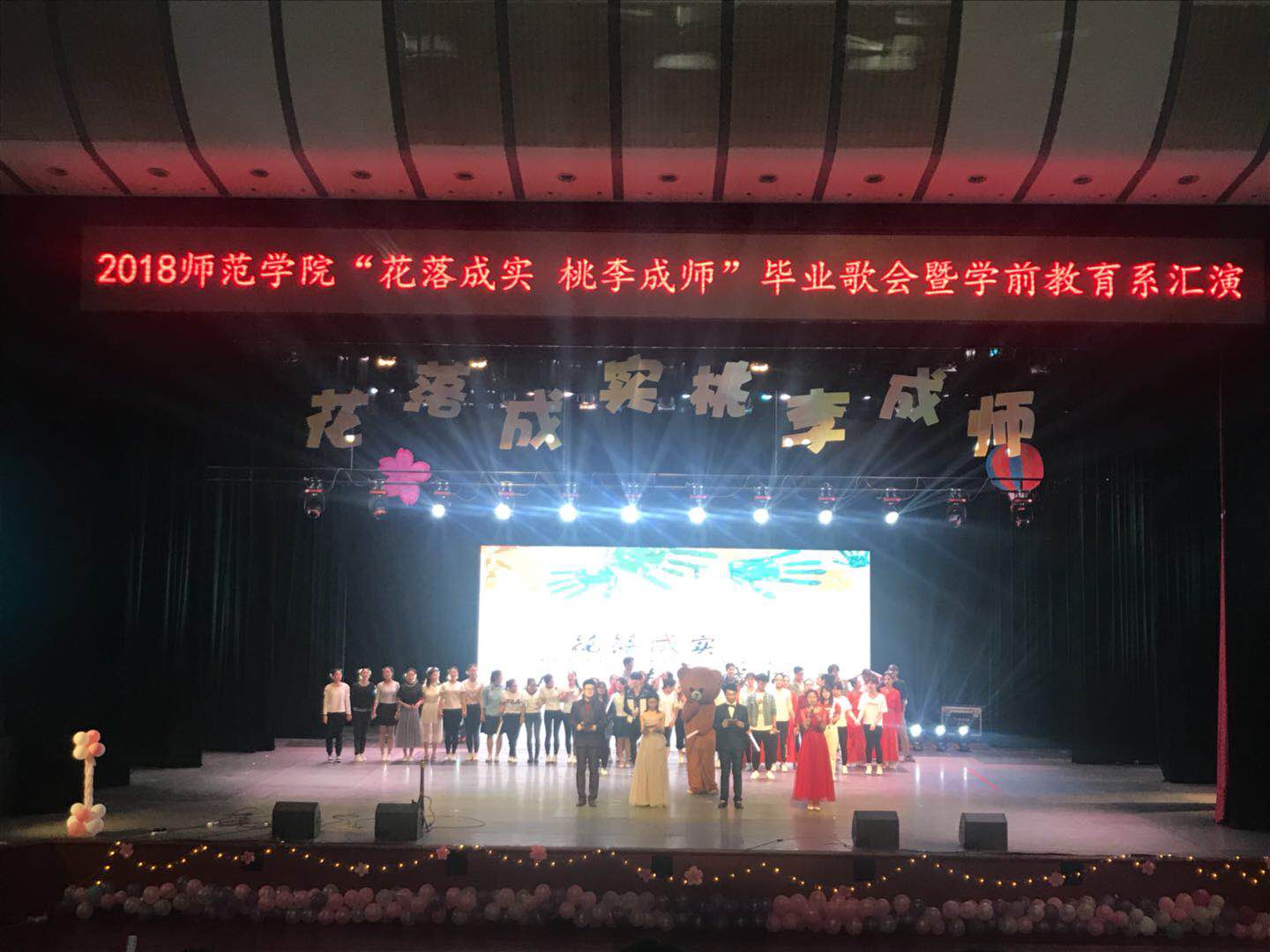 2018年5月16日,工口 师范学院“花落成实 桃李成师” 2018届毕业歌会暨学前教育专业汇报演出在工口 剧院隆重举行。师范学院党委副书记王成海、全体学工人员、学前教育系全体教师及部分专业师生共同观看了本次演出。