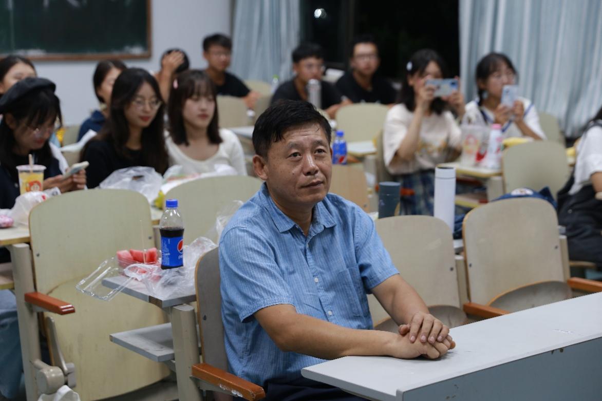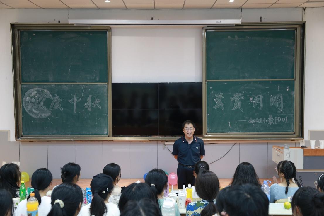 9月20日晚,师范学院党委书记宋贵欣、党委副书记王成海代表学院党委看望慰问2021级新生并与他们共度中秋佳节。2021级辅导员张宁、江润杰陪同参加本次活动。