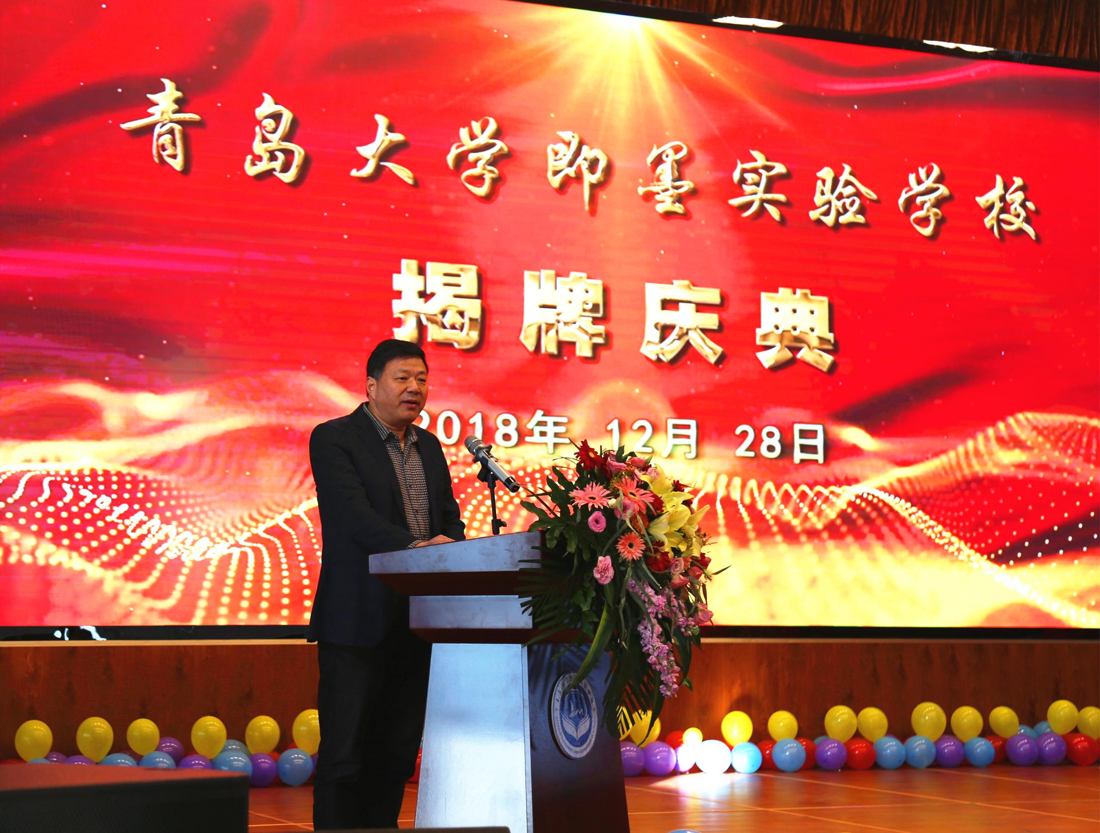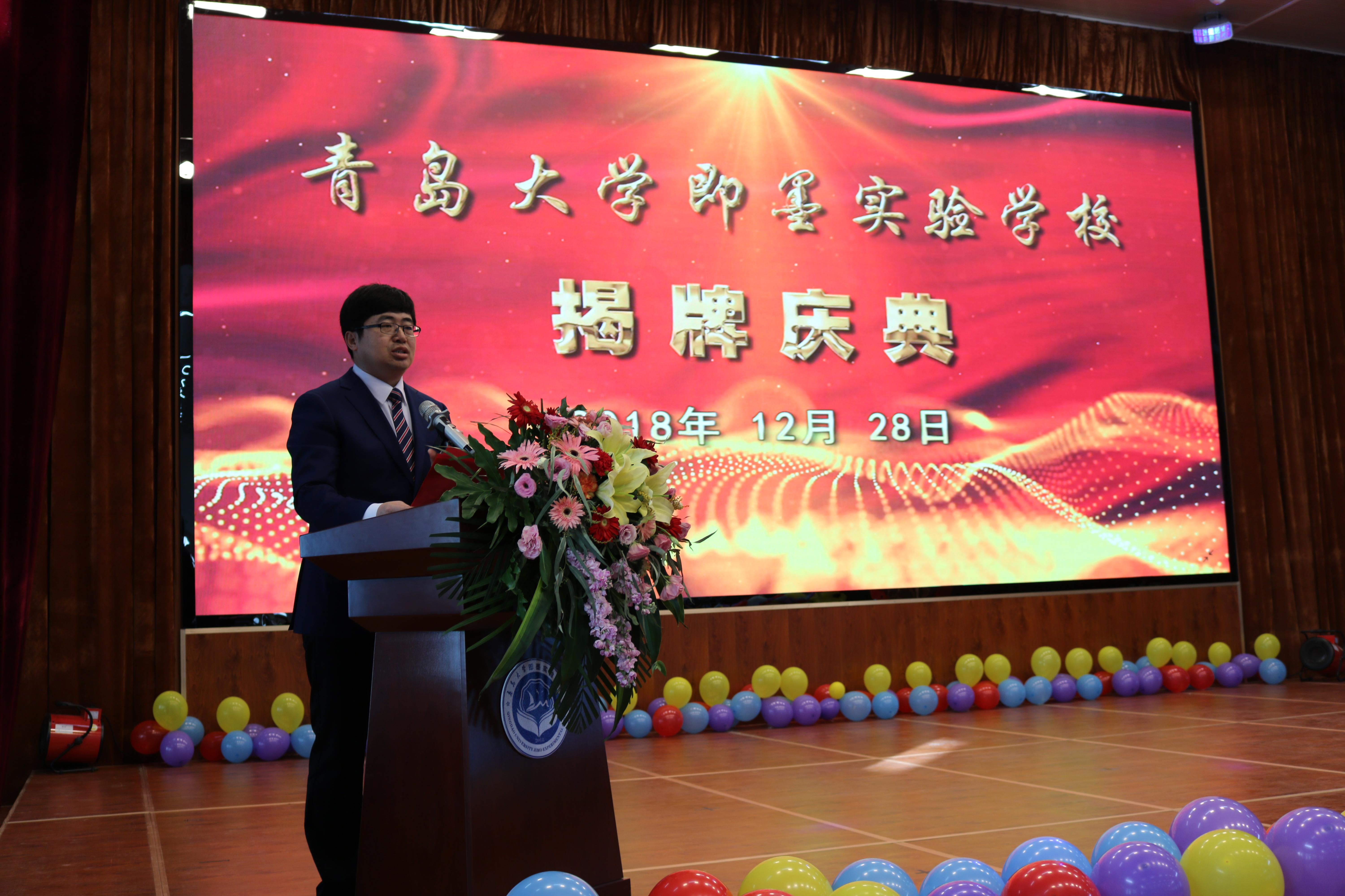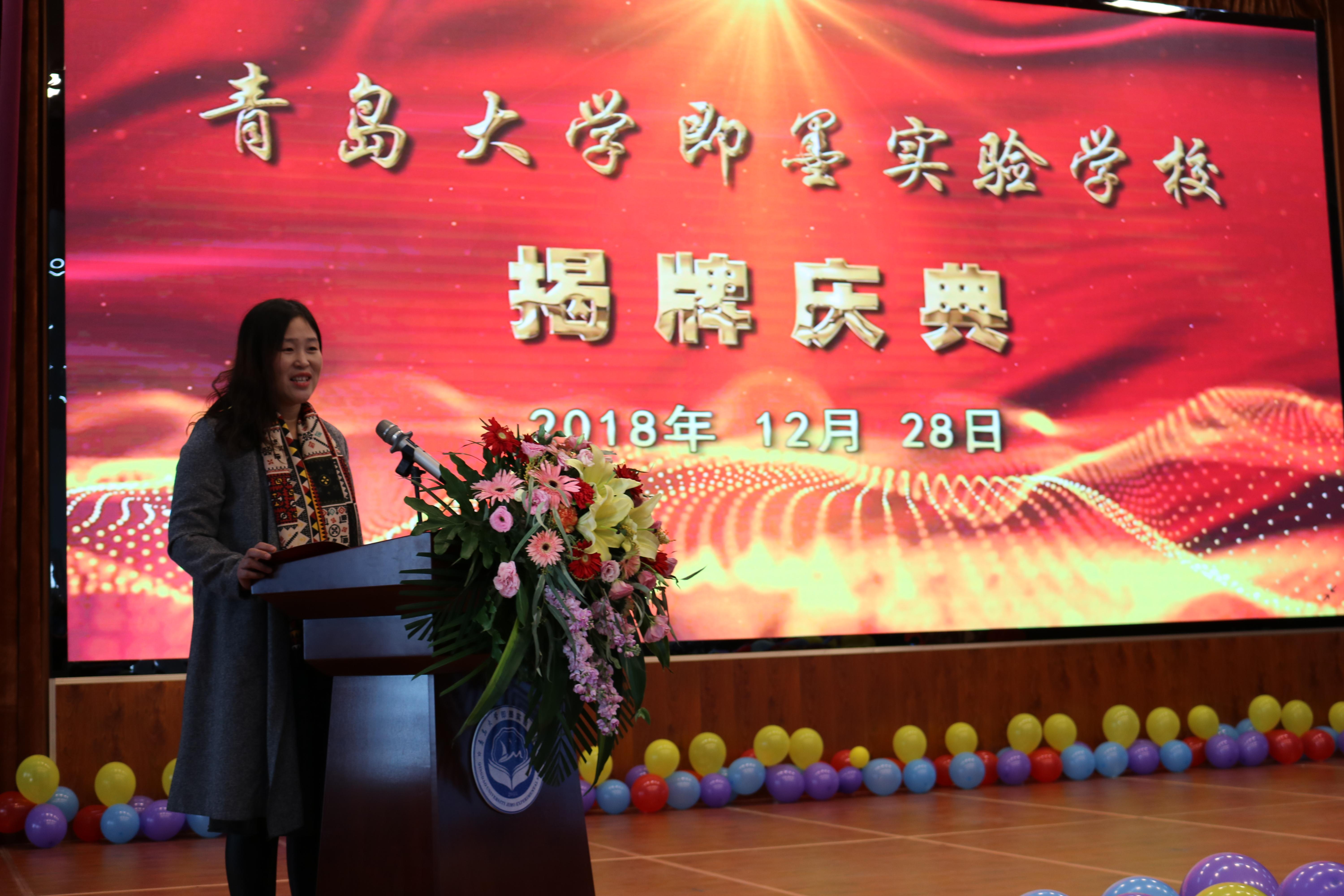庆典由学校小学部朱美英校长主持,伴随着学校宣传片《源起之路》的播放,揭牌仪式拉开了帷幕。回顾建校历程,虽然短暂,但每一处都彰显出了各级领导的关怀和支持,凝聚了青大即墨实验人的心血。