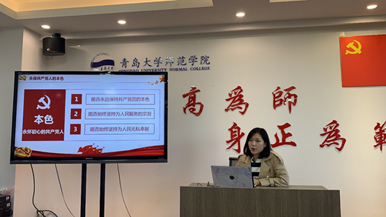 10月31日,师范学院学生党支部在德润楼201会议室举办“怀初心,立师志,于平凡中奉献”主题党课,研究生党员迟彩玲主讲,学生党支部书记赵炜、全体学生党员、发展对象参加本次活动。