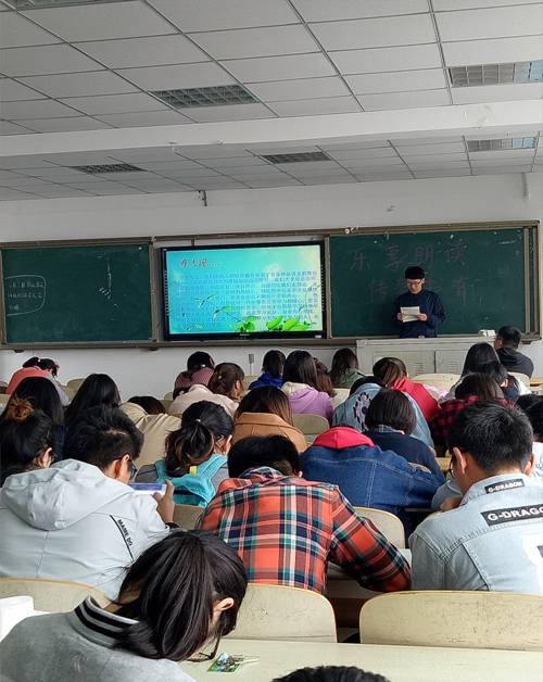 为响应学校“学在青大”、“书香校园”的号召,鼓励同学们多读书,读好书,提高文学素养,提升鉴赏能力。工口 学生党支部和院团委组织高年级党员和入党积极分子结对对接2016级新生班级,组织负责2016级每个班级于每周固定时间在工口 师范学院德音楼举行“乐享朗读,传袭书香”读书活动。