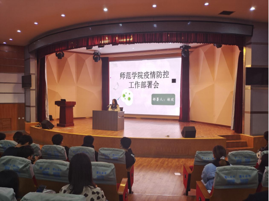 11月18日下午,师范学院2019级学生在师范学院报告厅召开疫情防控工作部署会,本次会议由2019级辅导员林欢主讲,学工办主任赵炜出席,师范学院2019级全体学生参加。