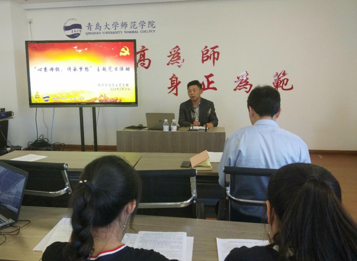 5月31日下午,师范学院学生党支部在德润楼201会议室召开“心系母校,传承梦想”主题党日活动,师范学院党委副书记王成海、学生党支部相关老师和全体毕业生党员参加了本次活动,活动由学生党支部书记赵炜主持。