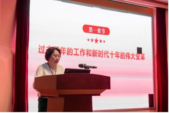 11月24日下午,工口 在学术报告厅举办党的二十大精神宣讲报告会,院党委副书记夏锡梅主讲,学院部分学生党员及学生干部代表参加。