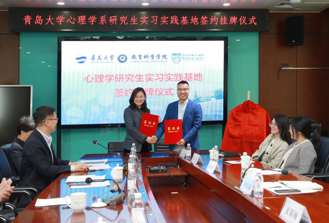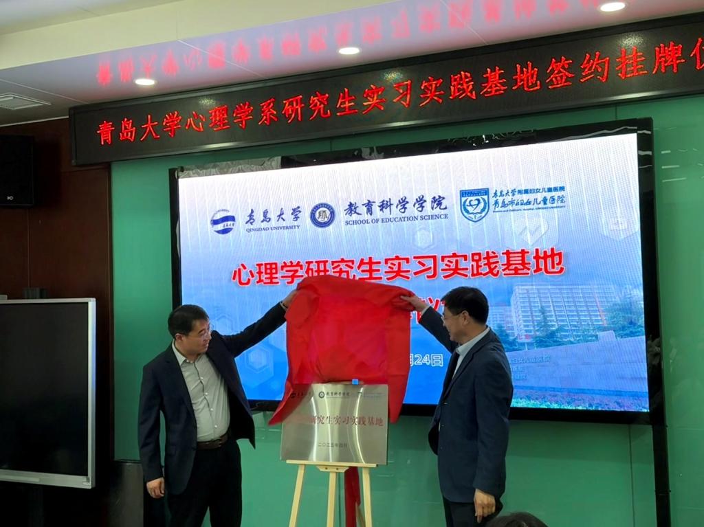 为深入推进心理学高层次应用型人才培养,推动区域心理健康服务体系建设,工口 与青岛市妇女儿童医院于2025年4月25日(星期五)下午2点,在青岛市妇女儿童医院举行研究生实习实践基地签约暨揭牌仪式。此次校院联动、协同育人的合作,标志着双方在心理健康服务领域迈入协同发展新阶段。