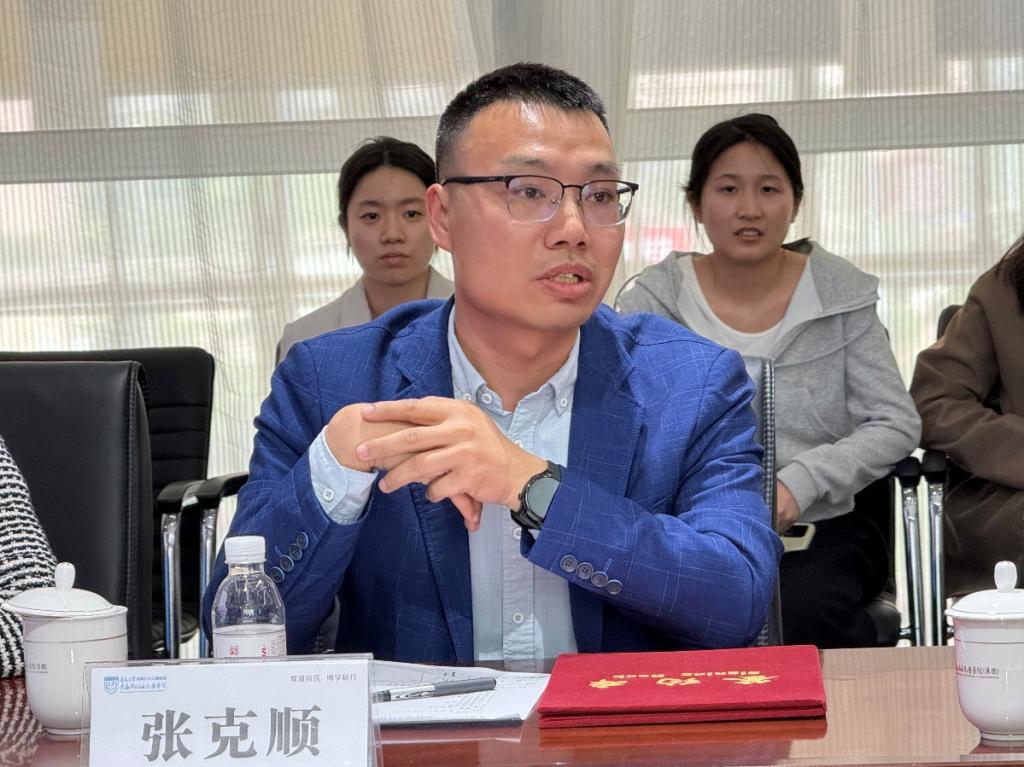 仪式上,工口 党委书记刘清亮发表致辞,全面介绍了学院心理学科的发展进程及人才培养成效。他表示,与医院共建实践基地,是推动研究生专业能力提升、深化协同育人的重要举措。未来,双方将重点围绕三方面深入合作:一是深化协同育人机制,夯实研究生实践能力基础;二是推动科研成果有效转化,提升服务社会的实际成效;三是实现学术资源、人才队伍及平台资源的高效整合与共享。