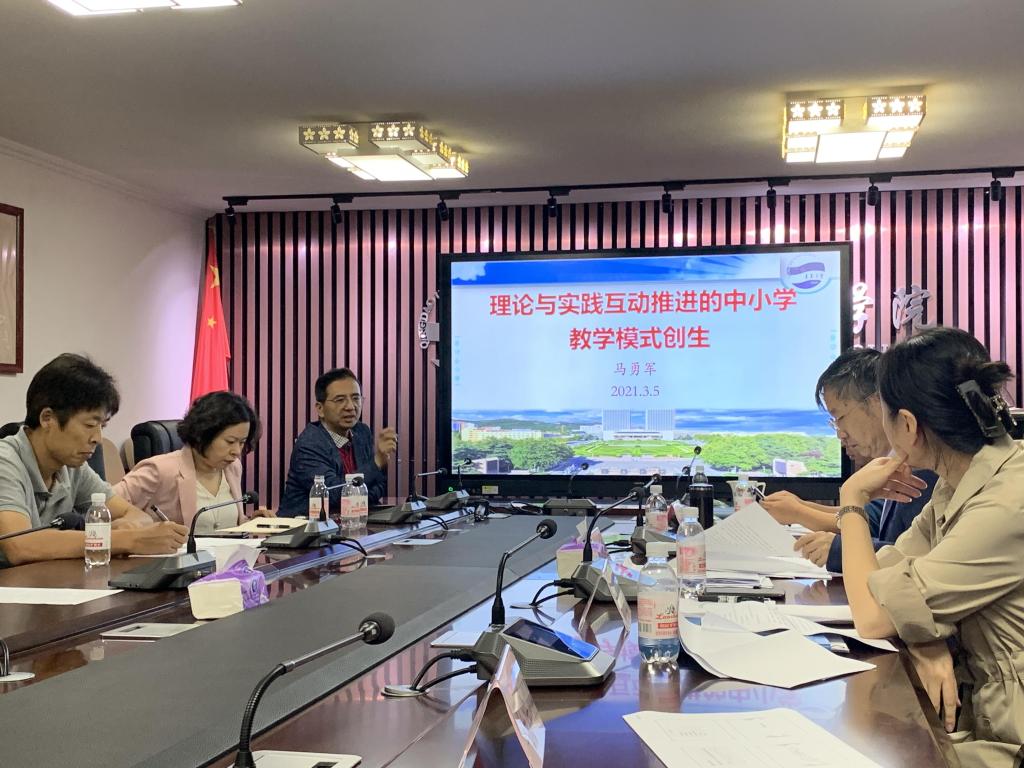 为有效提升学院省级教学成果奖的申报质量,10月7日下午在德润楼301会议室召开师范学院省级教学成果奖申报论证与专家咨询会。特邀山东省教育科学研究院薄存旭教授、研究生院院长潘秋泓两位评审专家到会指导。院长孙百才、副院长马勇军、教科办、小学教育系、学前教育系部分教师参加了此次会议,会议由马勇军主持。