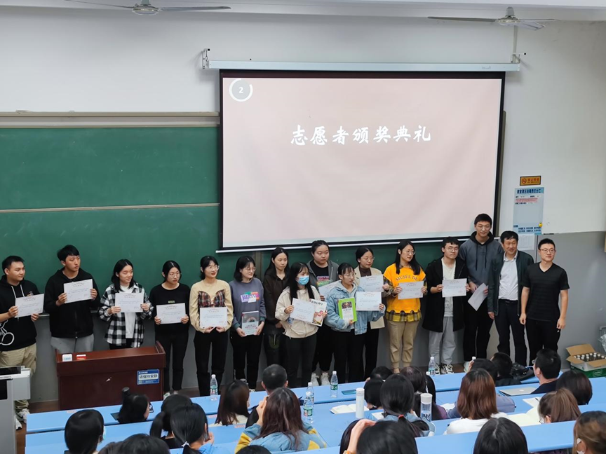 活动的第二环节是心理学志愿者协会成立仪式暨志愿者颁奖典礼,由心理学系教师史娟博士主持。为进一步提高学生的心理健康水平,发挥心理学系的自身专业优势并更好的服务于社会,在陶明达副院长的指导下,心理学系本科生与研究生本以次活动为契机成立了心理学志愿者协会。陶明达参加会议并讲话。陶明达、心理学系党支部书记魏星博士为在中国心理卫生协会青少年心理专业委员会第十六届学术年会中辛勤付出的志愿者代表颁发证书和专业书籍予以表彰。