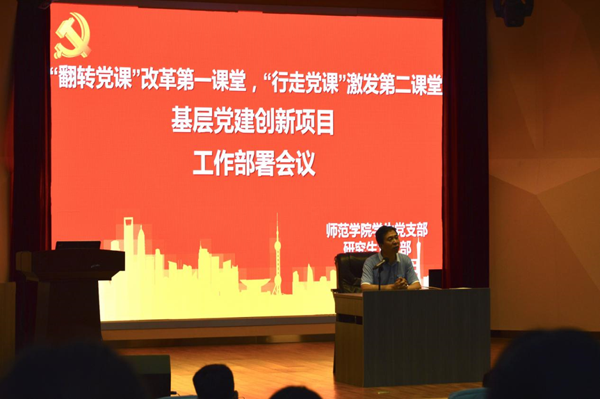 随后,赵炜就师范学院学生党支部“行走党课”基层党建创新项目作了具体介绍。赵炜代表学生党支部向大家通报了“行走党课”获校党委组织部基层党建创新项目重点立项的喜讯,并对此工作进行进一步安排部署。他提出学生党支部应在“翻转党课”优秀结项的基础上,进一步挖掘岛城的红色资源,宣传党历史上的红色人物,传承红色精神,讲好红色故事,大力开展爱国主义教育,开展不同形式的宣传、竞赛等,将学生党支部优秀党建项目品牌宣传好,成为基层党建创新项目的标杆。