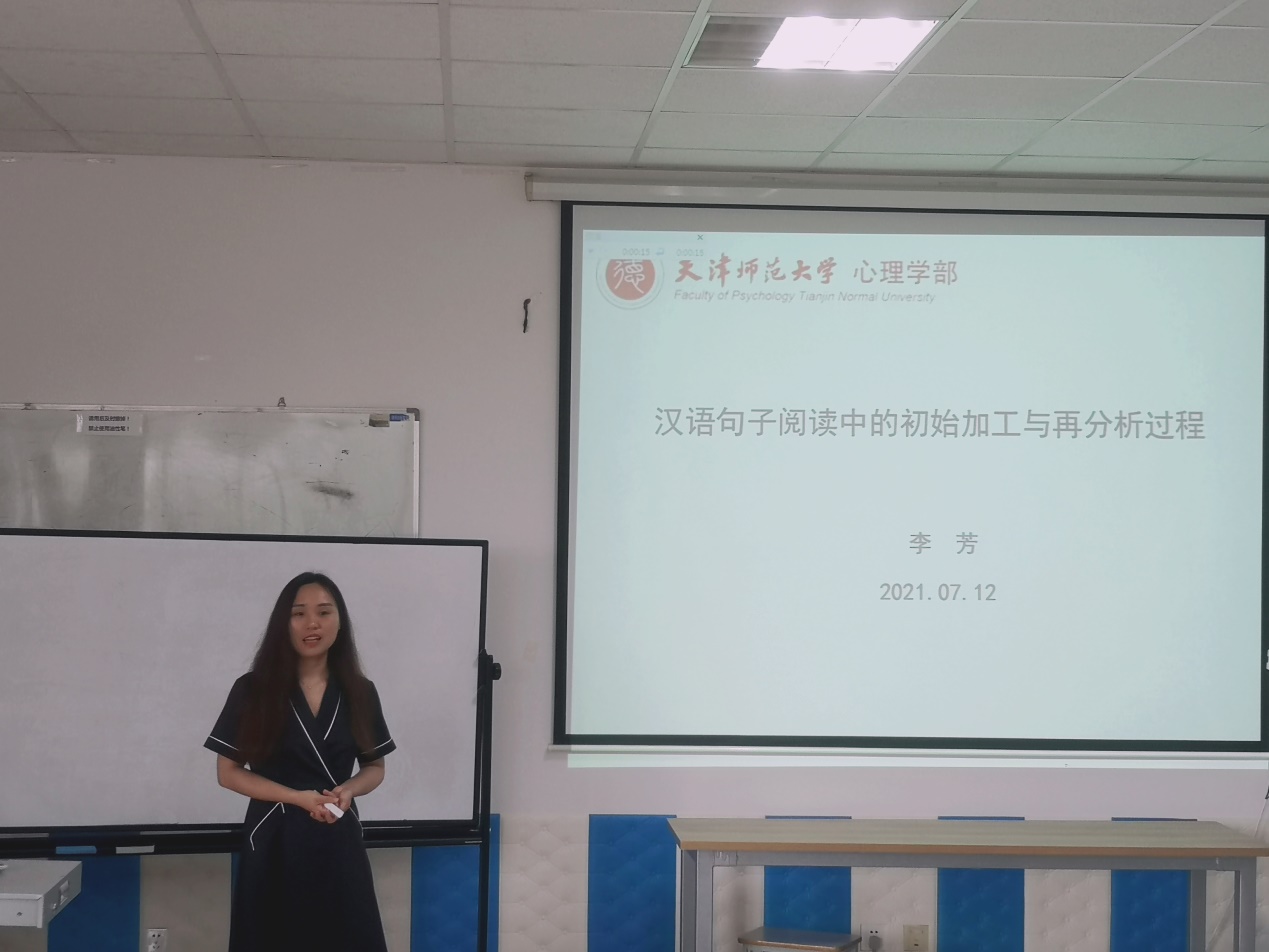 7月13日,天津师范大学心理学部李芳博士应师范学院邀请在德音楼115和德润楼306做了两场关于“汉语句子阅读中的初始加工与再分析过程”及“眼动分析技术在心理学中的应用”为主题的学术报告,此次学术报告由心理学系副主任宫准教授、心理学系党支部书记魏星老师主持。师范学院教师、心理学系研究生及本科生全体同学参加了此次活动。