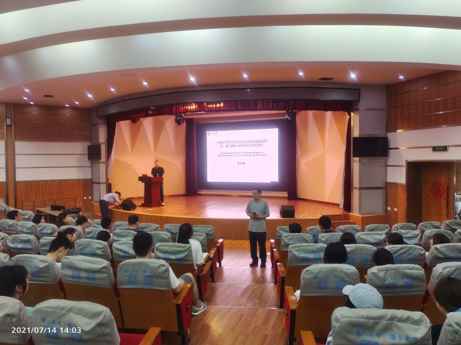 7月14日,师范学院在德润楼报告厅举办2021夏季学期高端学术报告活动。王兴华教授应邀做了题为“在线协作学习中协同认知主体性发展轨迹探究”的高端学术报告。师范学院相关师生参加。报告会由教育技术系主任杨进中主持。