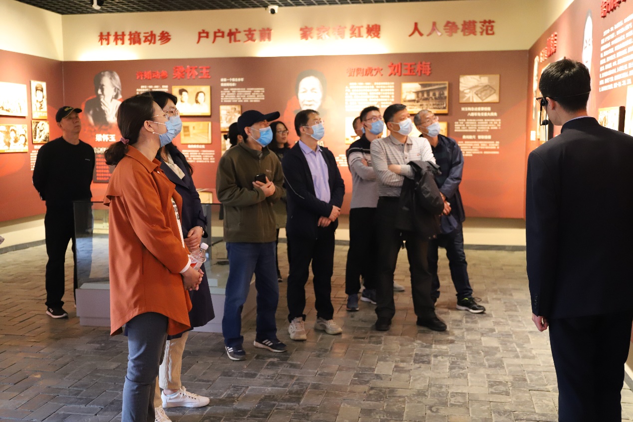 接下来,同志们走进了位于沂南县马牧池乡常山庄村的山东沂蒙党性教育基地——“沂蒙红嫂纪念馆”,通过一张张图片、一个个故事、一件件历史实物深入了解党的艰苦卓绝的奋斗历程,重温红色革命激情。参观过程中,同志们被红嫂原型明德英、沂蒙母亲王换于、沂蒙大姐李桂芳、拥军妈妈胡玉萍等一个个高大亲切的形象、一个个感人至深的故事所震撼,深刻体会到了“最后一口粮当军粮,最后一块布做军装,最后一个儿子送战场”为核心的红嫂精神,真切感悟到了革命年代军民的鱼水深情。