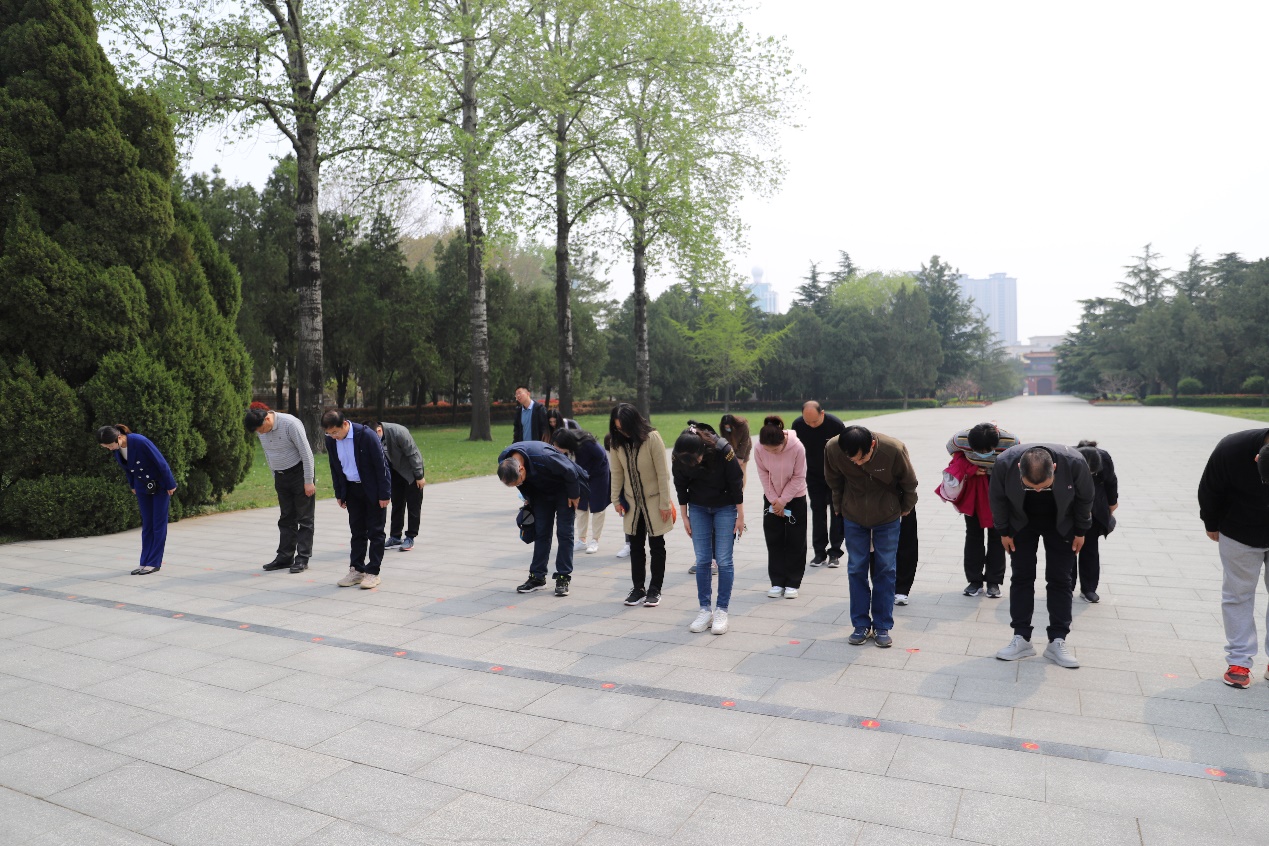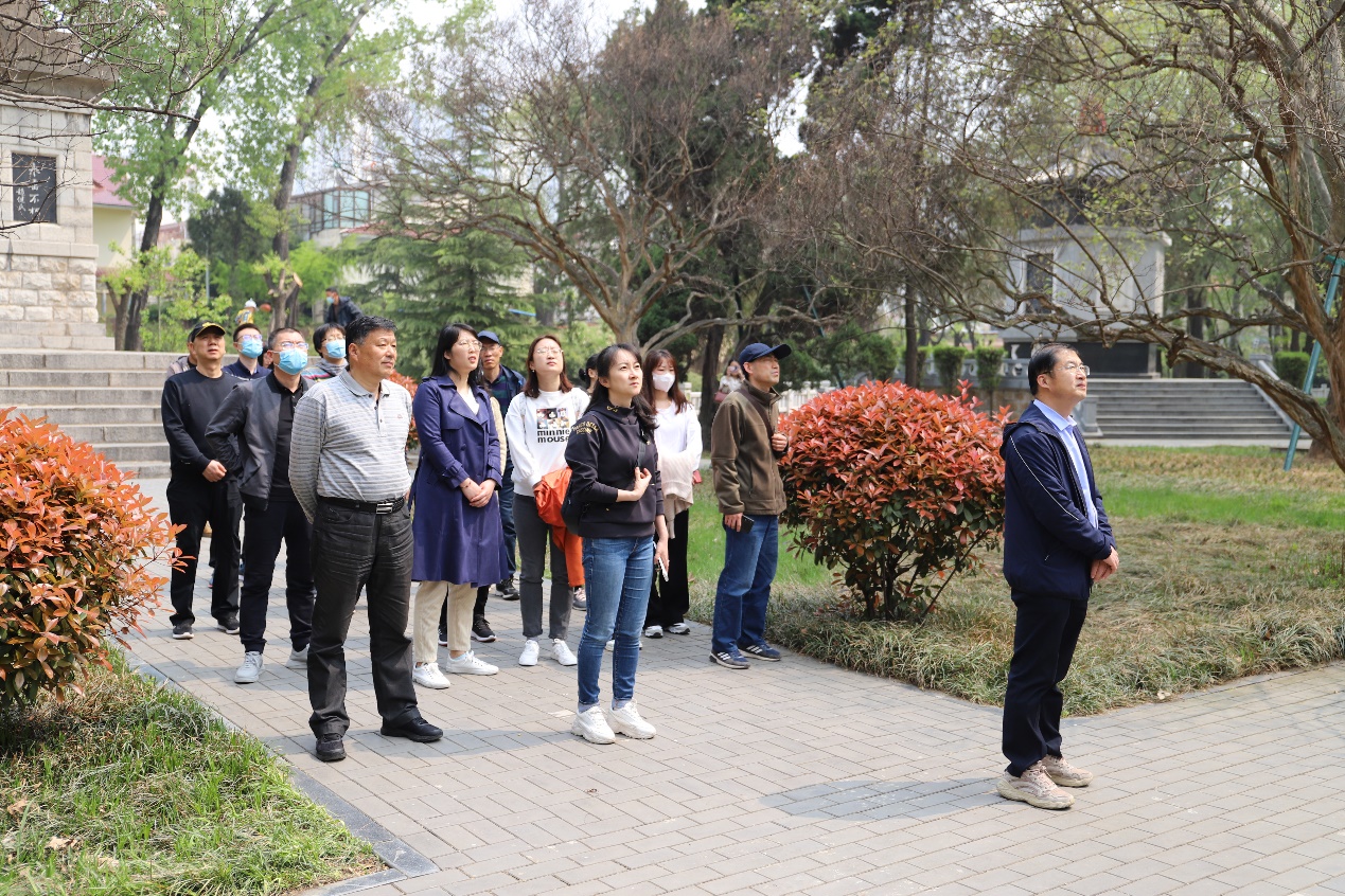 全体同志于4月9日早上出发,首站到达位于临沂市兰山区的华东革命烈士陵园,一行党员参观了园区内的粟裕、罗炳辉、汉斯·希伯等著名烈士墓,走进了革命烈士纪念堂,看到了在沂蒙山区境内战斗、工作牺牲的62576位烈士的英名,听到了一个个感人的革命事迹。在讲解员的带领下,全体党员同志面向革命烈士纪念塔三鞠躬向英烈表达哀思,神情肃穆而坚定。