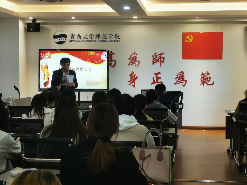 10月30日中午,师范学院学生党支部在德润楼201会议室召开师范学院发展新党员大会。学院党委副书记王成海、校党委组织员徐炜光、全体党员和党员发展对象参加本次活动。会议由学生党支部书记赵炜主持。