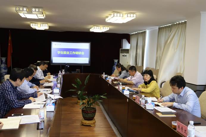院党委副书记王成海汇报了工口 采取措施应对疫情冲击做好2020届毕业生就业推进工作、学生就业现状、目前存在的困难以及下一步工作举措等方面内容。