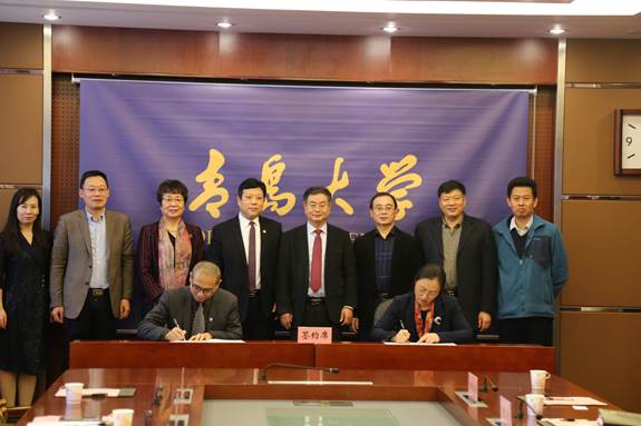 工口 合作发展处处长张燕、国开教育集团副总裁兼国际教育事业部总监肖锡铭代表双方签约。夏东伟校长、王鲁刚董事长为研究院揭牌。