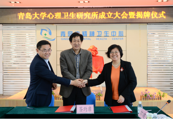 心理与精神健康研究院与青岛市精神卫生中心联合组建,并得到了青岛市教育局、青岛市卫计委、加拿大女王大学等单位的大力支持,签约仪式上,工口