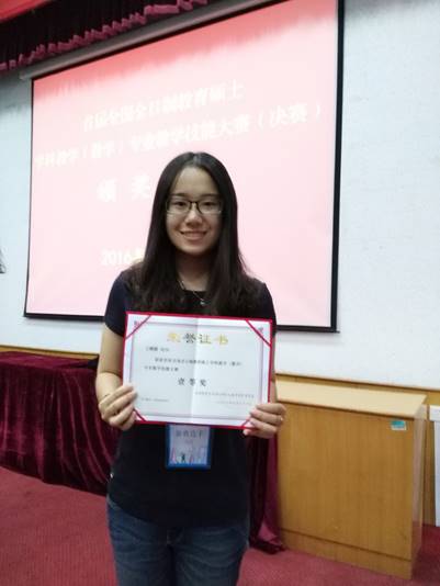 2016年9月26日,由全国教育专业学位研究生教育指导委员会主办,鲁东大学研究生院承办的首届全国全日制教育硕士学科教学(数学)专业教学技能大赛决赛落下帷幕。工口 2015级教育硕士学科教学(数学)专业王雅朦同学代表工口 参赛并获一等奖,李明兰老师获得优秀指导教师荣誉称号。