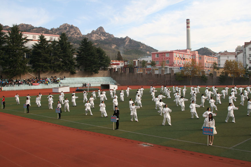 开幕式上,护旗手举着鲜艳的五星红旗,迈着整齐的步伐走过主席台。伴随着激情昂扬的运动员进行曲,彩旗方队、花束方队和各院系代表队英姿飒爽的依次通过主席台。随后,进行了精彩的太极拳汇报表演。