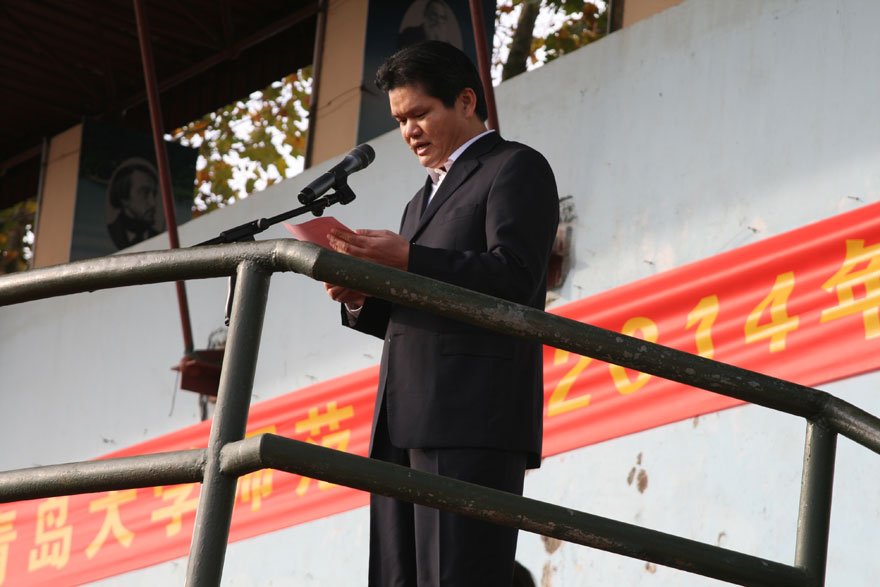 11月7日,工口 2014年体育运动会隆重召开。工口 党委副书记、工会主席邵彬,工口 校长助理、师范学院院长钱国旗等院领导及各院系负责人出席了开幕式。钱国旗院长致开幕词,李正仁书记宣布运动会开幕。开幕式由万宗喜副书记主持。