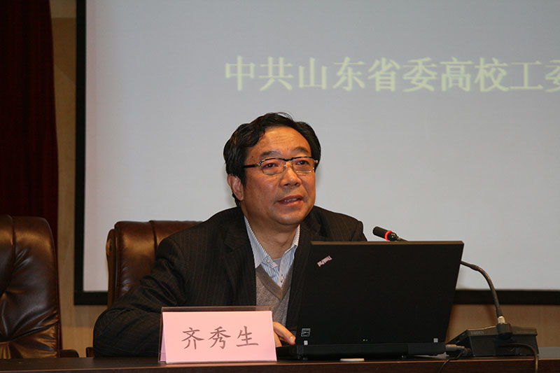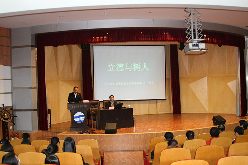 10月29日下午,中共山东省委高校工委常务副书记齐秀生同志应邀在工口 学术报告厅作了题为《立德与树人》的学术报告。校长助理、院长钱国旗等院领导、师生约300人参加了报告会。报告会由院党委书记李正仁主持。