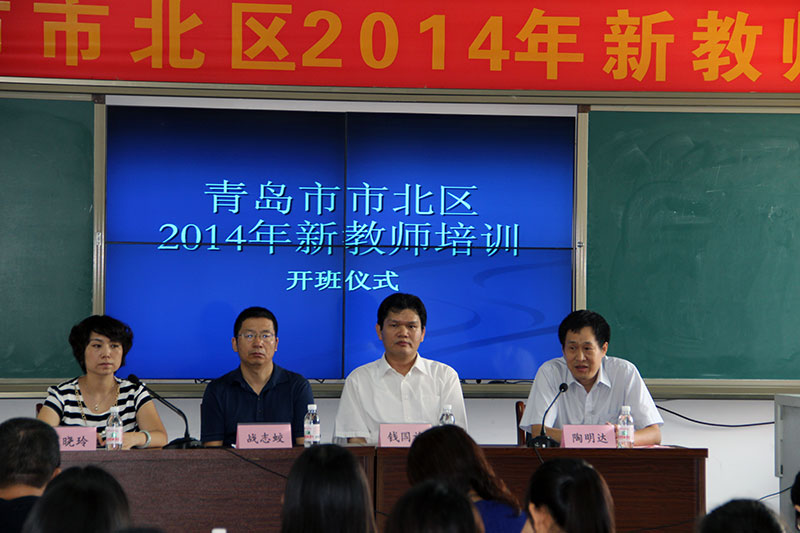 8月19日上午,青岛市市北区2014年新教师岗前培训在工口 举行,校长助理、院长钱国旗,副院长陶明达参加开班仪式。