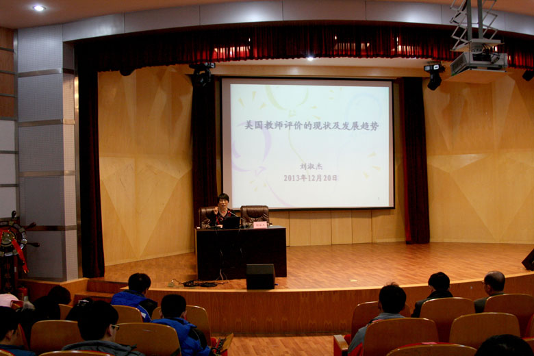 12月20日下午,留美博士孟令奇、刘淑杰夫妇应邀在师范学院学术报告厅作了主题为《美国高等教育及中小学教师教育评价特色及启示》的学术报告。报告会由师范学院副院长马斗成主持,师范学院全体教师、研究生约300人参加了报告会。