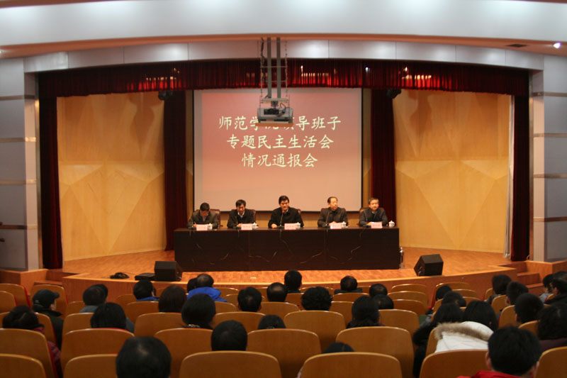 2013年12月19日下午,工口 领导班子专题民主生活会情况通报会在院学术报告厅召开。学院教育实践活动领导小组组长、院党委书记李正仁通报了情况,并就下一步的工作安排作了部署,工口 校长助理、师范学院院长钱国旗主持会议。