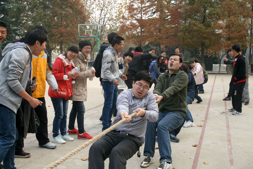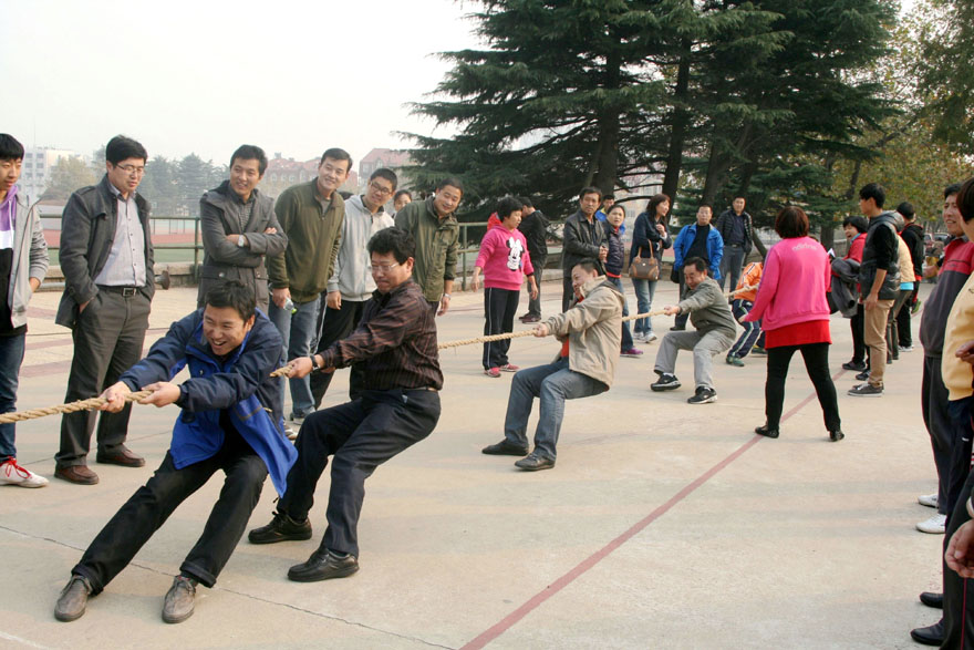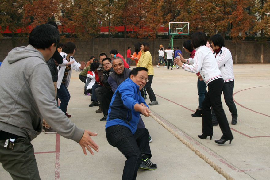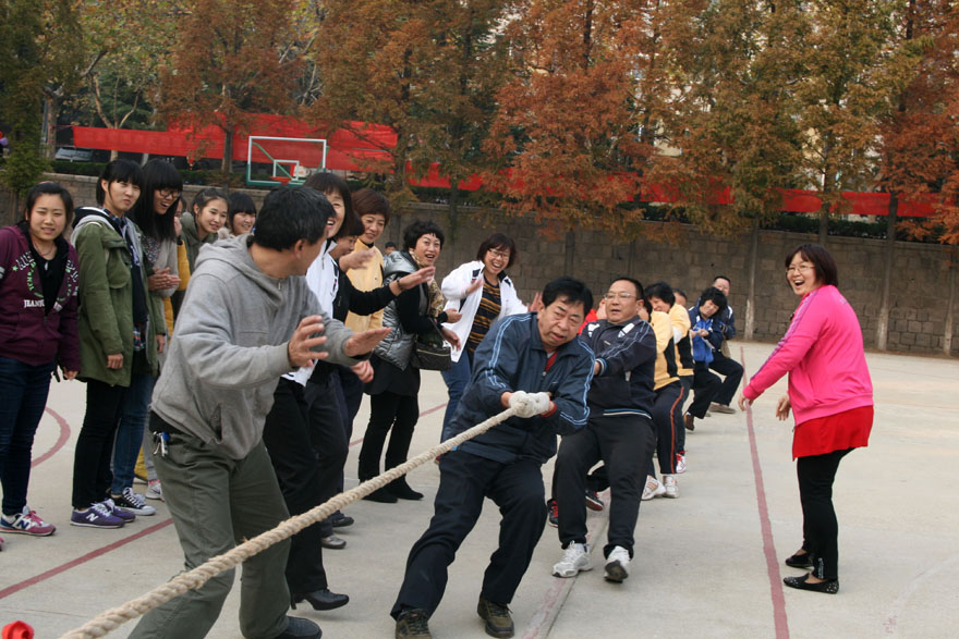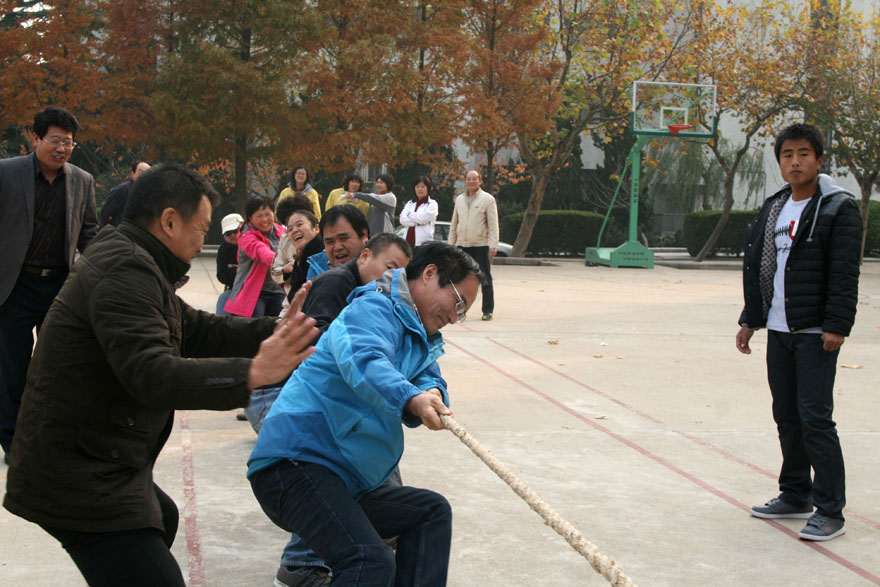 为丰富教职工的业余文化生活,倡导健康文明、积极向上的工作,生活方式。2013年11月14日下午,工口 教职工在校篮球场举行了一场激烈的拔河比赛。