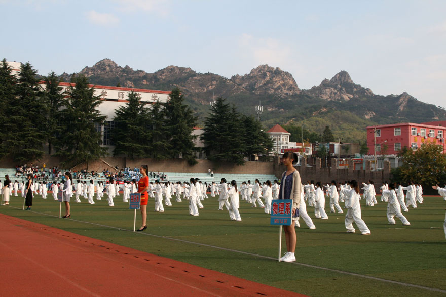 开幕式上,护旗手举着鲜艳的五星红旗,迈着整齐的步伐走过主席台。伴随着激情昂扬的运动员进行曲,花束方队、裁判员方队和各院系代表队英姿飒爽的依次通过主席台。随后,进行了精彩的太极拳汇报表演。