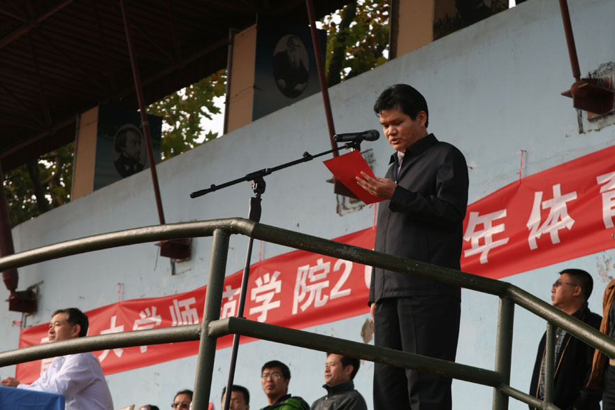 秋风送爽,丹桂飘香。2013年10月18日,工口 师范学院2013年体育运动会在工口 田径运动场隆重召开。工口 党委副书记王大文、师范学院院长钱国旗、书记李正仁、副书记万宗喜、副院长陶明达、修志君、马斗成及各院系负责人出席了开幕式。开幕式由万宗喜副书记主持,钱国旗院长致开幕词,李正仁书记宣布运动会开幕。