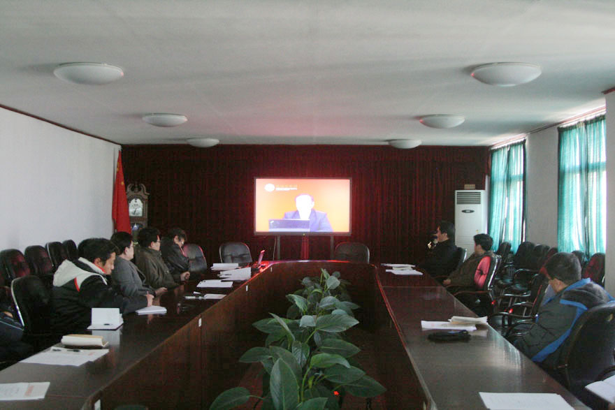 12月12日下午,工口 在办公楼三楼会议室集中观看学习“坚定不移地走中国特色社会主义道路”十八大理论辅导光盘。院领导及党委中心组全体成员参加会议。