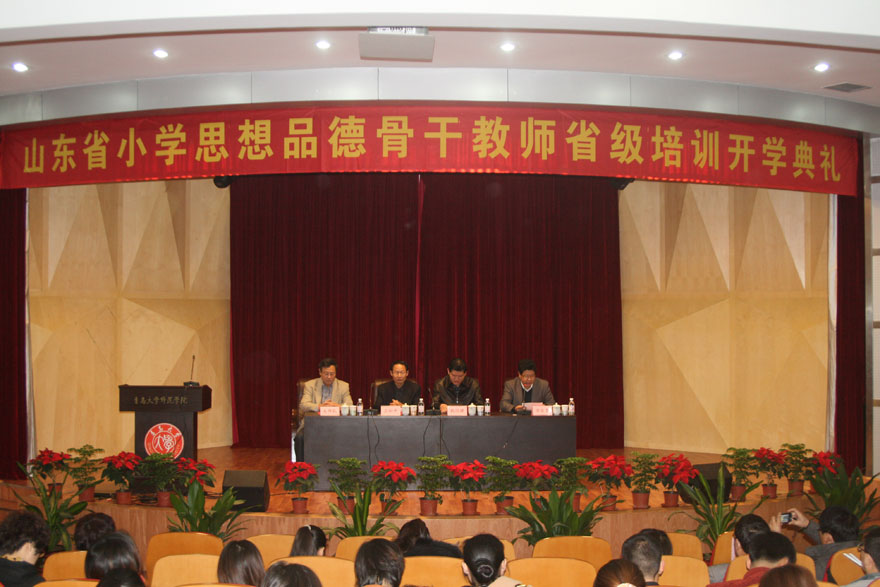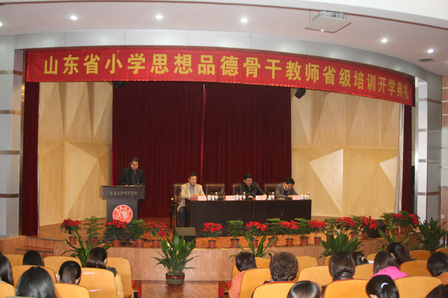 11月7日上午,2012年山东省小学思想品德骨干教师省级培训开学典礼仪式在工口 学术报告厅隆重举行。工口 校长助理、师范学院常务副院长钱国旗,副院长王松平、万宗喜、吴伟民出席典礼。