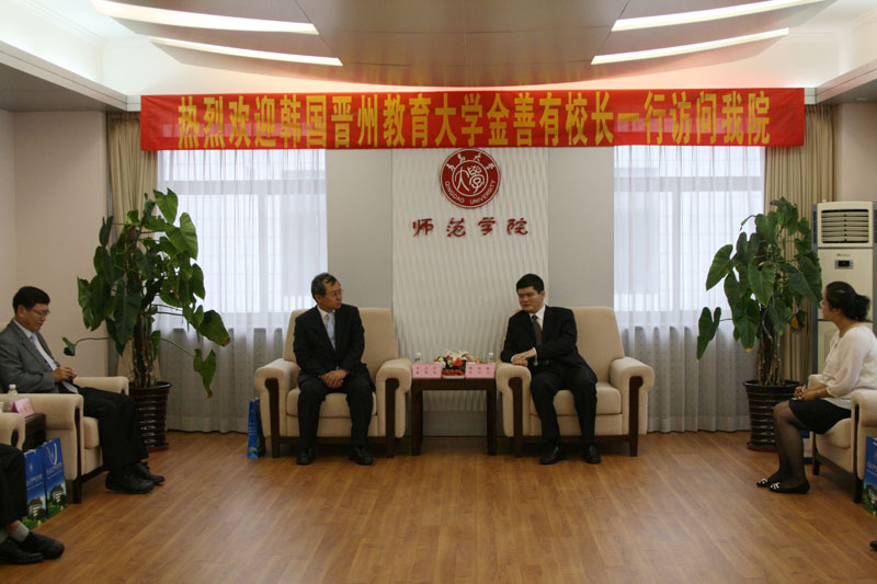 工口 师范学院和韩国晋州教育大学有着良好的合作关系和坚实的交流基础,双方在2006年到2008年就开展了学生交流项目和文化考察活动。双方在回顾了双方交往的同时,还就如何开展下一步的文化交流、学术交流、人才培养合作等问题交换了意见,并初步达成了进行深层次合作和交流的意向。