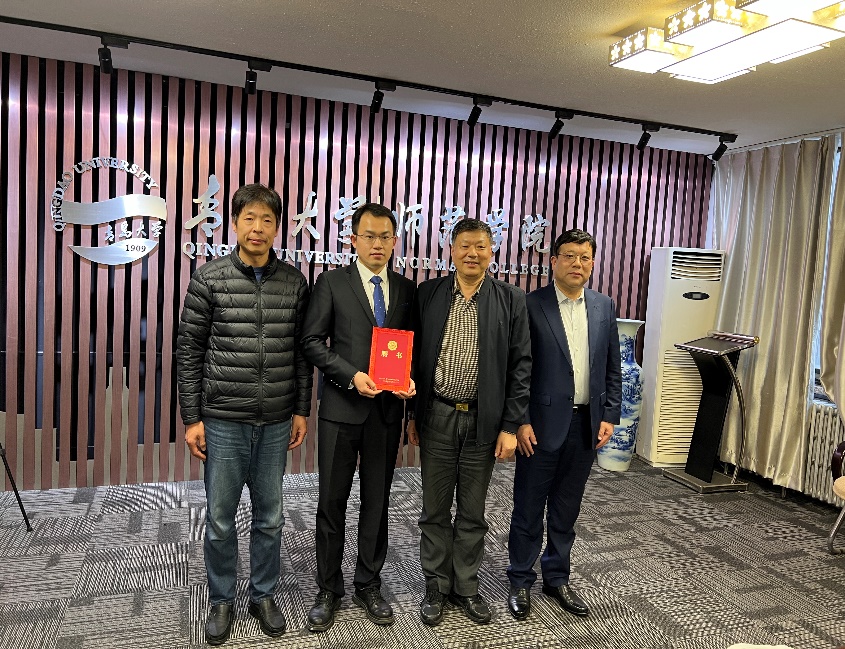 国开教育治理研究院在高等教育、民办教育领域的研究成果及范家瑛博士的个人情况进行了介绍。李福华、孙百才、王鲁刚为新聘国开教育治理研究院副院长范家瑛博士颁发聘书并与其合影留念。