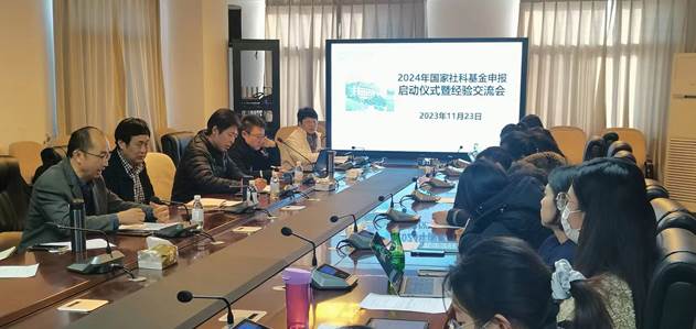 陶明达介绍了学校人文社科处工作部署和学院2024年度国家社科基金申报工作安排,希望参加申报的老师们严格按照学校通知要求,精心论证、细致打磨,争取在2024年度申报工作中取得突出成绩。