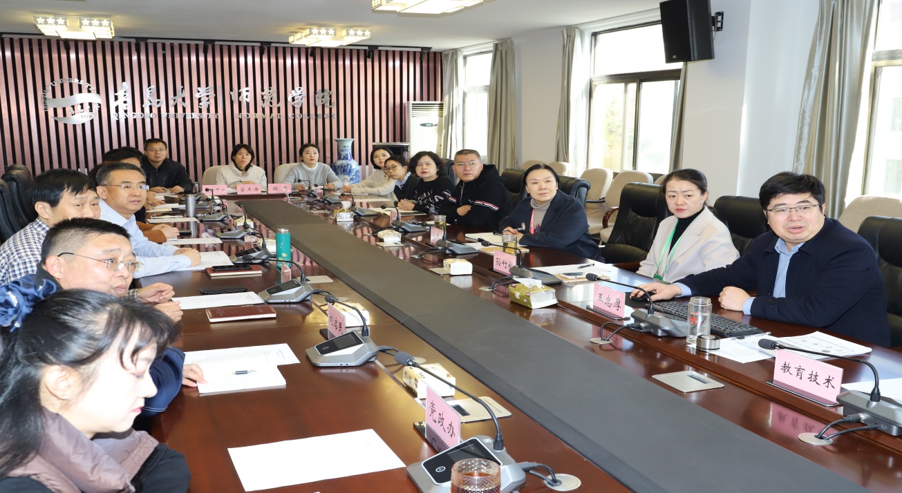 院长助理王忠厚从工口概况 、办学定位与人才培养目标、师资队伍与教学资源建设,以及人才培养措施与成效等四个方面,向入会人员做了详实且深入的汇报。汇报结束后,审核评估专家就学院发展定位与专业调整、“3+4”人才培养模式、教师专业发展、教学部门管理人员设置等问题与学院领导和教师们进行了互动交流。