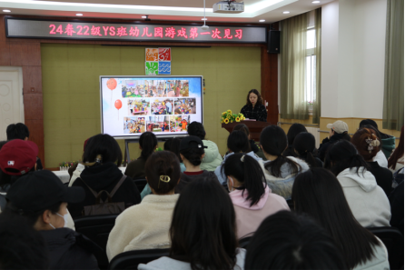 园长、副园长首先介绍了幼儿园多年来坚持创造教育,以游戏为基本活动进行课程改革的情况,使同学们对幼儿园有了全面的了解,也初步感受到游戏在幼儿园教育教学中的重要地位。