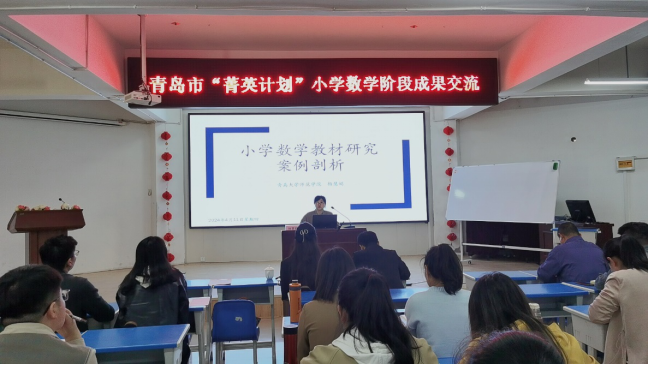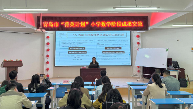 随后,杨慧娟、孙晓红分别进行了评课,并且给菁英计划的学员与即墨大信中心小学的老师做了培训讲座。杨慧娟以《小学数学教材研究案例剖析》为题,两个案例为基础,向老师们讲解了教材研究的目的、意义、价值、方法等。孙晓红向大家呈现了乡村教师专业发展研究的方法、过程、结论等,老师们纷纷表示受益匪浅。