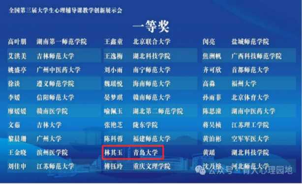 工口 学生获得全国大学生心理辅导课教学创新大赛一等奖