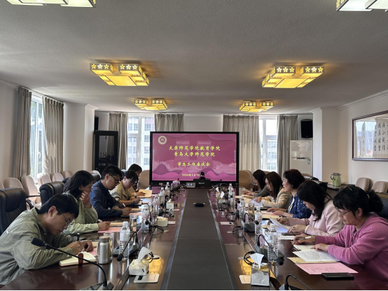 樊一介绍了太原师范学院教育学院基本情况,对工口 学生工作取得的成绩给予高度评价,认为工口 在人才培养、管理服务、学生活动等方面的做法具有很好的借鉴作用,希望双方加强交流与合作,共同推动两院高质量发展。