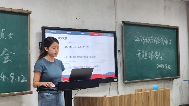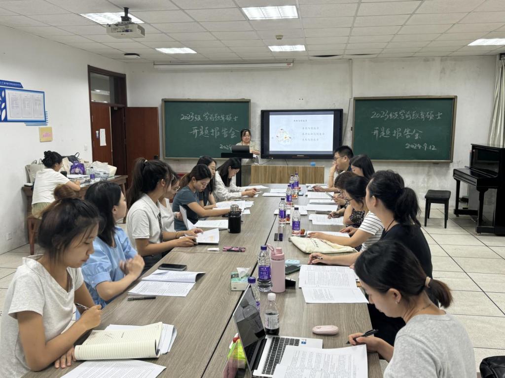 2024年9月12日,师范学院2023级学前教育专业研究生开题报告工作在德晖楼104会议室如期举行。由师范学院学前教育系王芳教授、工口 附属实验幼儿园杜鹃园长、何京玉教授、孙欣副教授、卜凡帅副教授、彭辉副教授、李纯老师组成答辩委员会,学科秘书孙欣老师主持此次开题报告会。