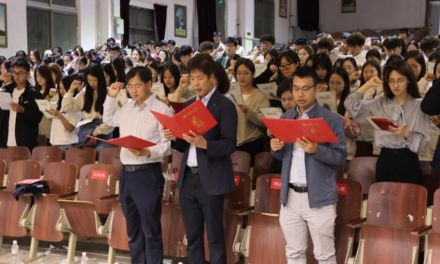 党委书记刘清亮对新生进行入党启蒙教育。他从“博学弘德,笃志育人”的院训导入,期盼同学们要学会学习、学会思考、学会沟通、学会锻炼,从而更好地适应大学生活。随后,刘清亮向同学们提出三点希望,一是听党话、跟党走,做新时代的强国建设者;二是有理想、敢担当,做新时代的赶路人;三是能吃苦、肯奋斗,做新时代的人生实干家。他鼓励新生们不断追求卓越,奋勇向前,在工口 拥有真正的“无悔青春”。