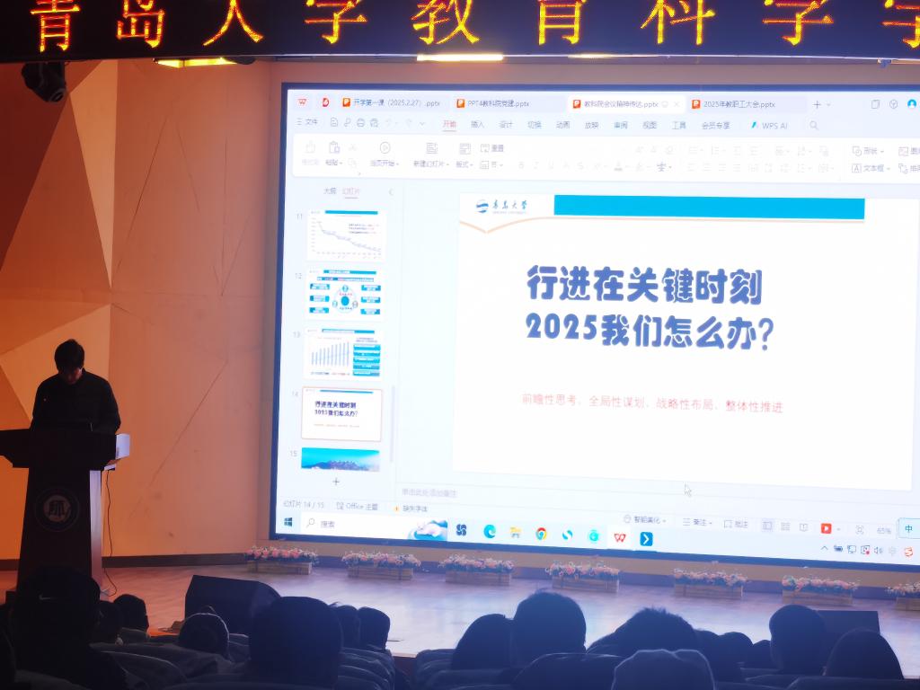 首先,刘清亮书记代表学院领导班子,向全体教职工致以新春的问候和诚挚的感谢!过去一年,在大家的共同努力下,学院在人才培养、学科建设、科研创新等方面取得了一系列突破性进展。新学期,刘清亮要求全体教职工要立足教育学科特色,聚焦高质量发展主题,从人才培养提质量、学科建设强根基、课堂教学促实效、人工智能赋新能四个维度发力,奋力书写工口 发展的新篇章。