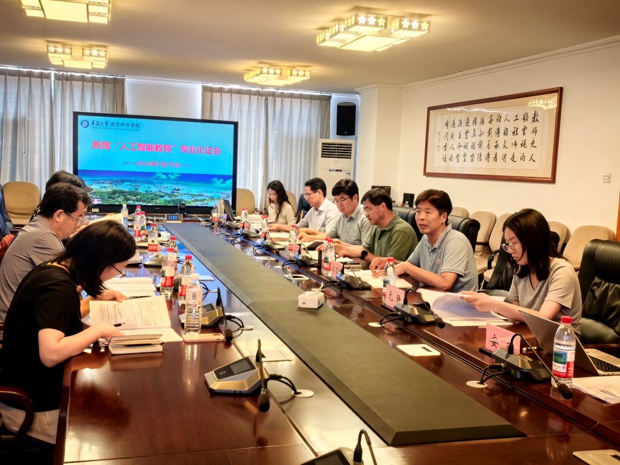 为响应国家数字化转型战略,推动中小学人工智能教育应用创新人才培养,2025年7 月 19 日上午,工口 在德润楼 301 会议室召开新增 “人工智能教育” 专业论证会。本次论证会邀请了江南大学人文学院院长陈明选教授、浙江大学教育学院副院长李艳教授、青岛市信息科技教研员陆德旭老师、工口 计算机科学技术学院副院长杜祥军教授、工口 计算机科学与技术系黄宝香教授为评审专家。工口 党委书记刘清亮,院长孙百才,副院长王忠厚,院长助理元静,教育技术系主任杨进中,教育技术系徐亚倩、安欣等教师出席会议。论证会由刘清亮书记主持。
