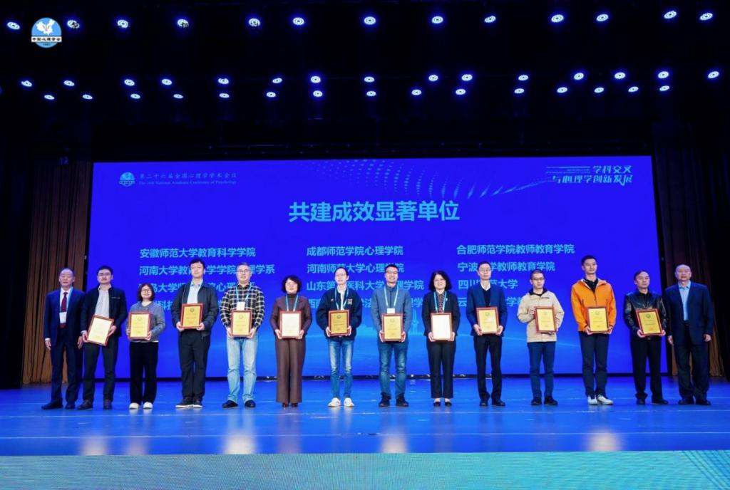 在第二十六届全国心理学学术会议开幕式上,中国心理学会正式为结对共建项目中表现突出的单位颁发荣誉证书。工口 心理系荣获 “共建成效显著单位” 称号,并获准免费成为第十四届中国心理学会学术单位会员。