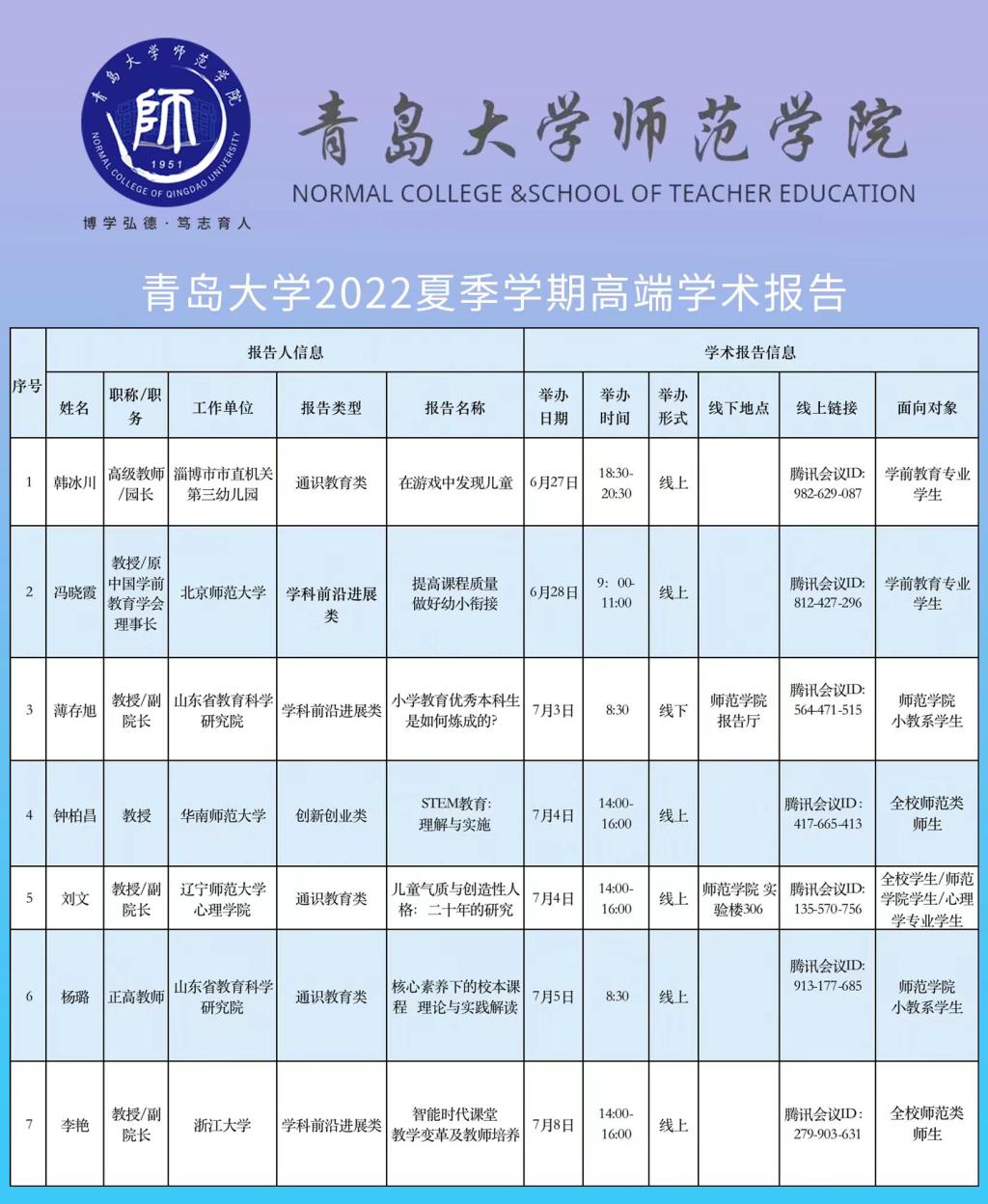 师范学院2022夏季学期高端学术报告