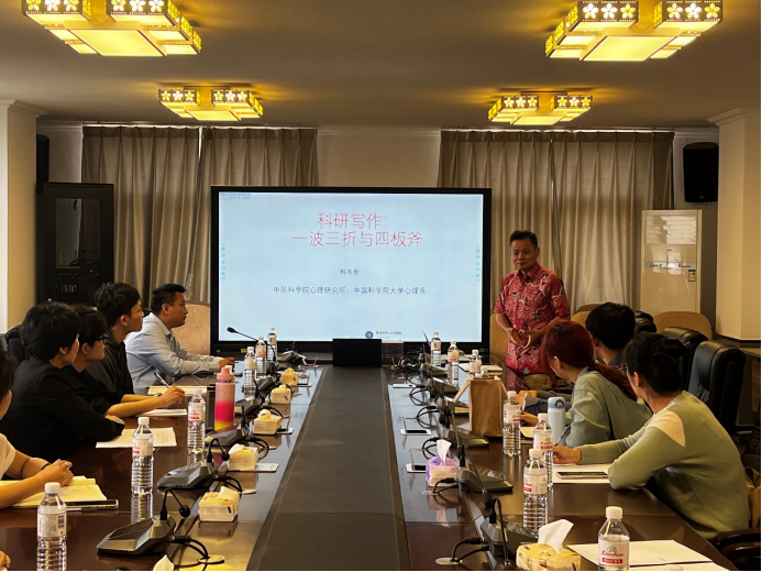韩布新研究员从文献查阅、综述写作的切入点、综述写作的目的、综述写作的分类、综述写作的逻辑等方面,对科研写作的方式方法进行了详细的讲述。将科研写作的重点归纳为“一波三折与四板斧”。“一波”指找准科学问题,“三折”包含了方法、结果与讨论,即方法要具备科学性,结果要逻辑清晰,充分详实,讨论要依靠“四板斧”。所谓“四板斧”指书写论文讨论时的四个抓手,即创新性、科学性、前沿性与问题及建议。整场讲座韩布新研究员将中国传统文化贯穿其中,指出了研究科学问题时文化情境的重要性,点明了中国优秀传统文化对中国心理学发展的重要意义。报告吸引了现场教师同学的积极提问与互动,大家纷纷表示通过本次学术报告受益匪浅、收获颇丰。